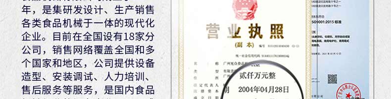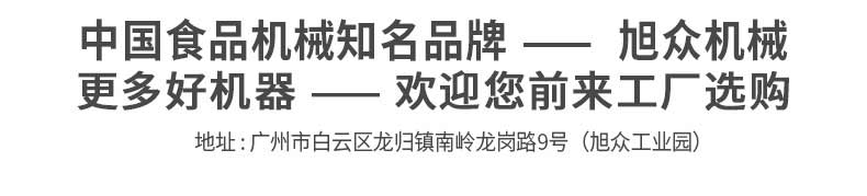 廣州旭眾食品機(jī)械有限公司是一家集科研開發(fā),生產(chǎn)設(shè)計(jì),營(yíng)銷服務(wù)為一體的現(xiàn)代化生產(chǎn)企業(yè)?,F(xiàn)代化生產(chǎn)車間,精湛制造技術(shù),所產(chǎn)機(jī)械歷經(jīng)市場(chǎng)重重考驗(yàn),不斷贏得海內(nèi)外客戶的贊譽(yù)。