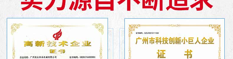 廣州旭眾食品機(jī)械有限公司是一家集科研開(kāi)發(fā),生產(chǎn)設(shè)計(jì),營(yíng)銷(xiāo)服務(wù)為一體的現(xiàn)代化生產(chǎn)企業(yè)。現(xiàn)代化生產(chǎn)車(chē)間,精湛制造技術(shù),所產(chǎn)機(jī)械歷經(jīng)市場(chǎng)重重考驗(yàn),不斷贏得海內(nèi)外客戶(hù)的贊譽(yù)。
