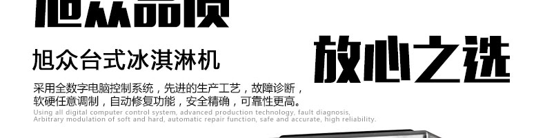 BQL-216T臺式冰淇淋機,●選用國際名牌成熟制冷配套件和高效壓縮機,融合旭眾精湛工藝輔以嚴格的質(zhì)量控制流程,使產(chǎn)品整體性能及品質(zhì)得以全面提升。●采用全數(shù)字電腦控制系統(tǒng),選用名牌優(yōu)質(zhì)電器元件,先進的生產(chǎn)工藝,故障診斷,軟硬任意調(diào)制,自動修復(fù)功能,安全精確,可靠性更高?!駥I(yè)成熟制冷系統(tǒng)設(shè)計,選用世界名牌大功率專用壓縮機,大大縮短冰淇淋成型時間,相同時間內(nèi)冰淇淋產(chǎn)量大幅度增加,使您生意火爆時依然得心應(yīng)手,為您創(chuàng)造財富?!癜踩椒€(wěn)的機械攪拌系統(tǒng),噪音更低、振動更小,使整機運行性能達到國際先進水平。●確保進料溫度在0°C~35°C;環(huán)境溫度5°C~40°C勻可正常使用。