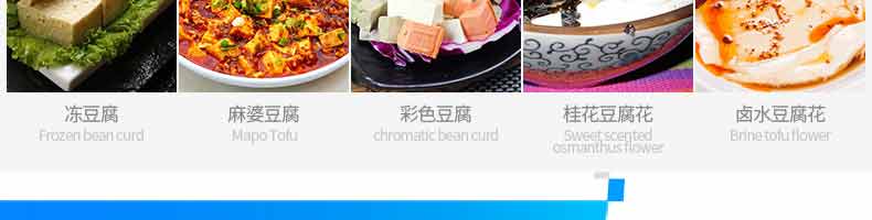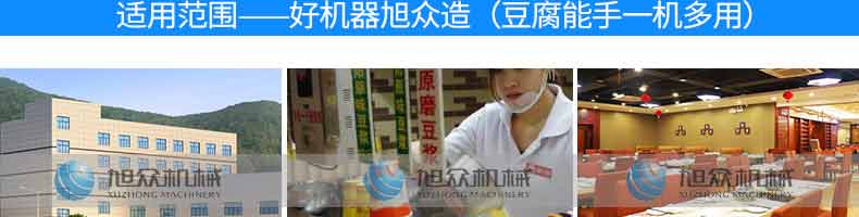XZ-60智能豆腐機(jī),一機(jī)多用:可生產(chǎn)豆腐系列產(chǎn)品:?jiǎn)紊郏希┒垢?、多彩?腐、單色豆腐皮、多色豆腐皮、彩色豆腐干、豆?jié){、豆花等豆制品制作,還可以與其他設(shè)備和工藝配套生 產(chǎn)更多的豆制品。