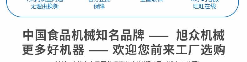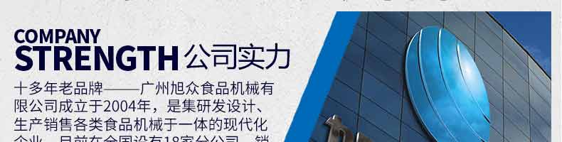 廣州旭眾食品機(jī)械有限公司是一家集科研開發(fā),生產(chǎn)設(shè)計(jì),營(yíng)銷服務(wù)為一體的現(xiàn)代化生產(chǎn)企業(yè)?,F(xiàn)代化生產(chǎn)車間,精湛制造技術(shù),所產(chǎn)機(jī)械歷經(jīng)市場(chǎng)重重考驗(yàn),不斷贏得海內(nèi)外客戶的贊譽(yù)。