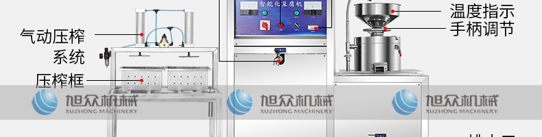 XZ-200 智能化豆腐機(jī),蒸汽煮熟、長久保鮮。通過水蒸氣高溫加熱煮熟,保持原有光澤與鮮美。人性化設(shè)計(jì)操作簡單,多項(xiàng)監(jiān)測機(jī)械的安全性。