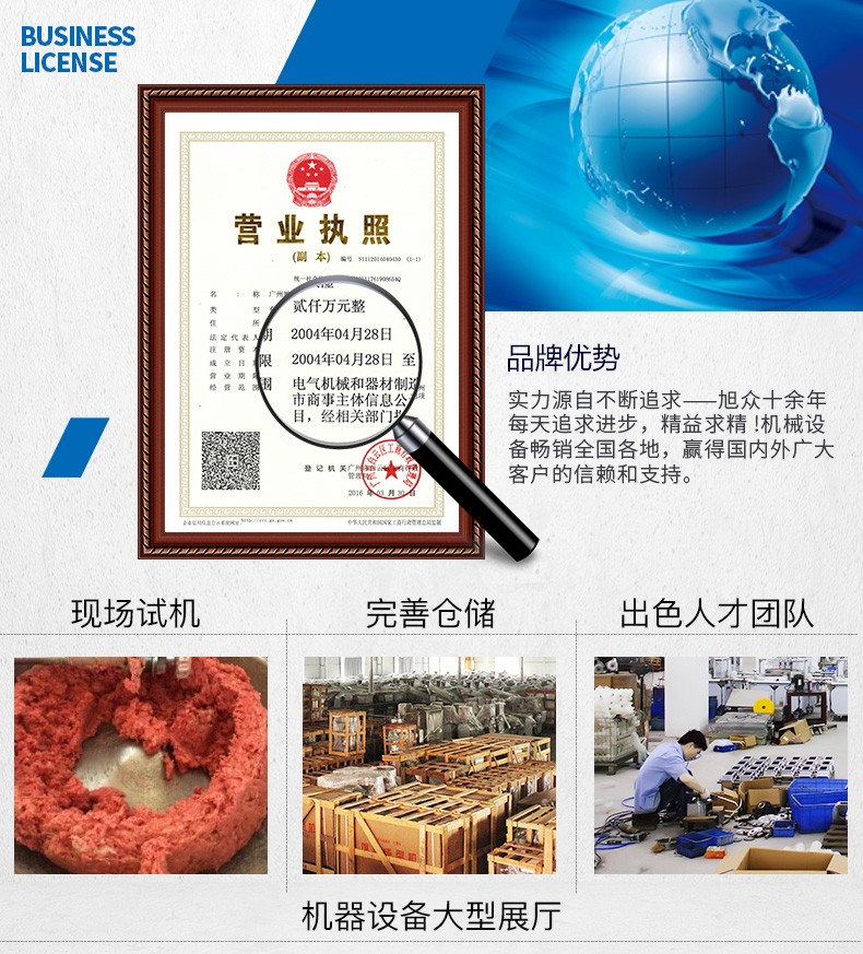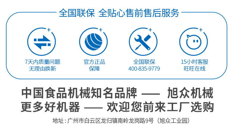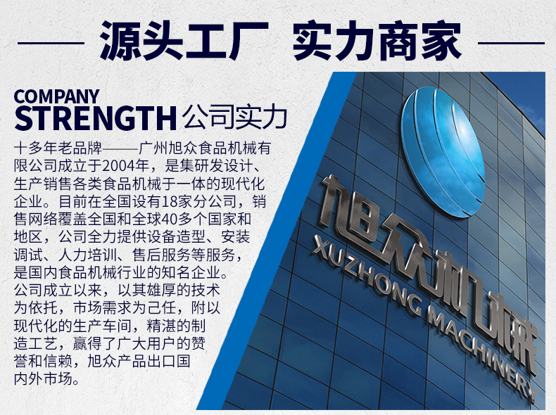 廣州旭眾食品機(jī)械有限公司是一家集科研開(kāi)發(fā),生產(chǎn)設(shè)計(jì),營(yíng)銷服務(wù)為一體的現(xiàn)代化生產(chǎn)企業(yè)?,F(xiàn)代化生產(chǎn)車間,精湛制造技術(shù),所產(chǎn)機(jī)械歷經(jīng)市場(chǎng)重重考驗(yàn),不斷贏得海內(nèi)外客戶的贊譽(yù)。