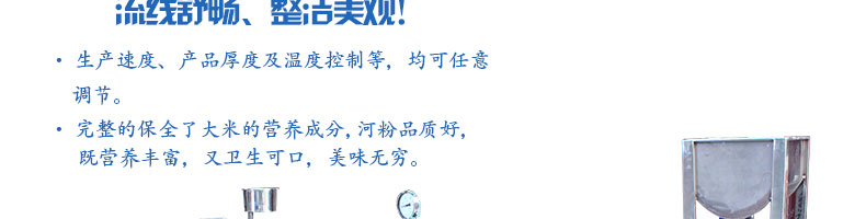 SZ-HF-80高效節(jié)能河粉機(jī),用高效節(jié)能河粉機(jī)生產(chǎn)的河粉,完整保全了大米的營(yíng)養(yǎng)成分,河粉品質(zhì)一流,既營(yíng)養(yǎng)豐富,又衛(wèi)生可口、美味無(wú)窮。
