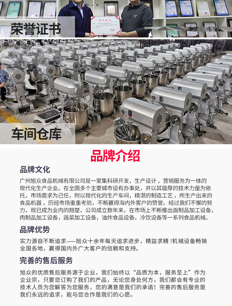 廣州旭眾食品機(jī)械有限公司是一家集科研開發(fā),生產(chǎn)設(shè)計(jì),營(yíng)銷服務(wù)為一體的現(xiàn)代化生產(chǎn)企業(yè)?,F(xiàn)代化生產(chǎn)車間,精湛制造技術(shù),所產(chǎn)機(jī)械歷經(jīng)市場(chǎng)重重考驗(yàn),不斷贏得海內(nèi)外客戶的贊譽(yù)。