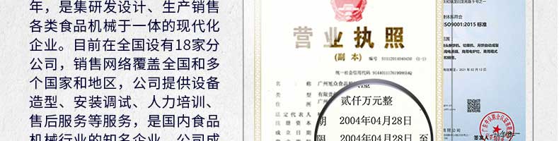 廣州旭眾食品機械有限公司是一家集科研開發(fā),生產(chǎn)設(shè)計,營銷服務為一體的現(xiàn)代化生產(chǎn)企業(yè)?,F(xiàn)代化生產(chǎn)車間,精湛制造技術(shù),所產(chǎn)機械歷經(jīng)市場重重考驗,不斷贏得海內(nèi)外客戶的贊譽。