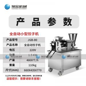 名稱80餃子機 電源220v 功率1.5kw 產量4800個/h 尺寸660*435*770mm 重量110kg 規(guī)格15-18g/個 其他