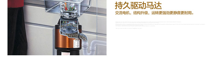 ACLQ56-廚房垃圾處理器,該機器是靠內(nèi)部結(jié)構(gòu)、零件組合達到處理垃圾的效果,通過碾、壓、擠、磨等系統(tǒng)的處理,在十幾秒內(nèi)安全將食物垃圾處理成小于3毫米的顆粒,隨著水流排入下水道,使用十分安全。