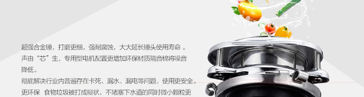 ACLQ37-廚房垃圾處理器,采用先進(jìn)的研磨系統(tǒng),采用特殊合金錘粉技術(shù),能根據(jù)垃圾的強(qiáng)度,自動(dòng)調(diào)節(jié)工作位置,處理垃圾的范圍和細(xì)度優(yōu)良。能夠有效地將食物垃圾研磨成細(xì)小顆粒,直接從下水管道排出,從而實(shí)現(xiàn)及時(shí)方便快捷的廚房清潔,滿足現(xiàn)代健康家居的要求。