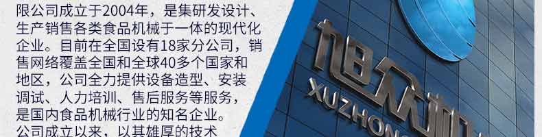 廣州旭眾食品機械有限公司是一家集科研開發(fā),生產(chǎn)設計,營銷服務為一體的現(xiàn)代化生產(chǎn)企業(yè)?,F(xiàn)代化生產(chǎn)車間,精湛制造技術,所產(chǎn)機械歷經(jīng)市場重重考驗,不斷贏得海內外客戶的贊譽。
