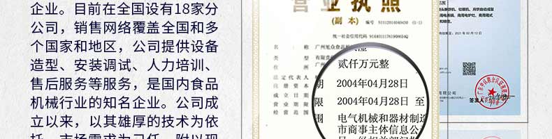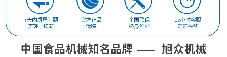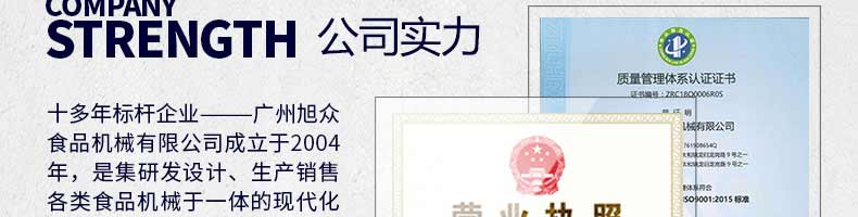 廣州旭眾食品機械有限公司是一家集科研開發(fā),生產設計,營銷服務為一體的現(xiàn)代化生產企業(yè)?,F(xiàn)代化生產車間,精湛制造技術,所產機械歷經市場重重考驗,不斷贏得海內外客戶的贊譽。
