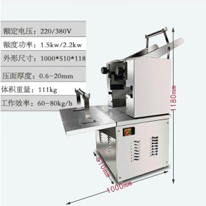 名稱60豪花型壓面面條機(jī) 電源220/380v 功率1.5kw-2.2kw 產(chǎn)量60-80kg/h 尺寸1000*510*118mm 重量111kg 規(guī)格 其他