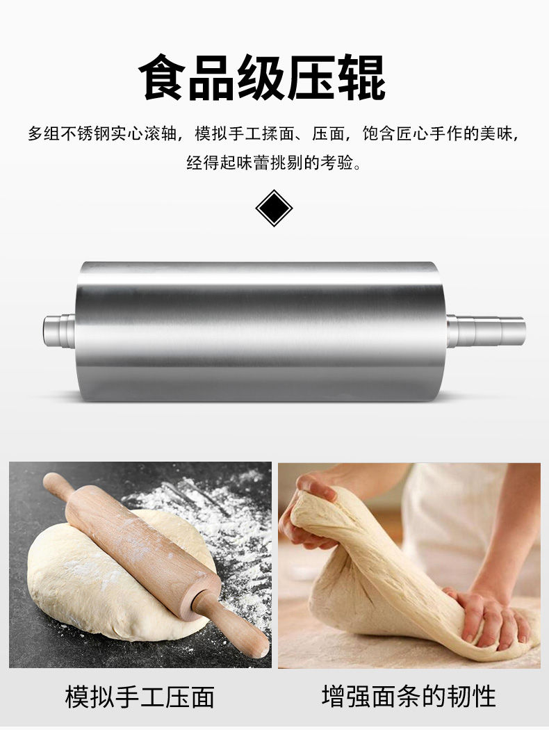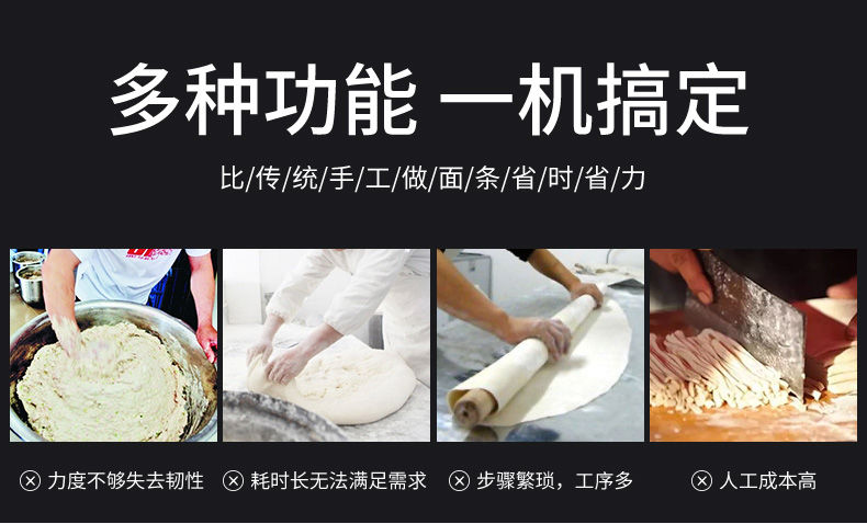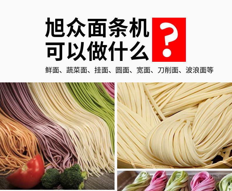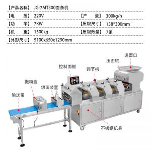JG-7MT300面條機,多種功能一機搞定比傳統(tǒng)手工做面條,省時省力??梢宰鍪裁歹r面、蔬菜面、掛面、圓面、寬面、刀削面、波浪面等。不同的面刀可以做出不同形狀的面食做工細,實用又方便,出面均勻,成型漂亮。