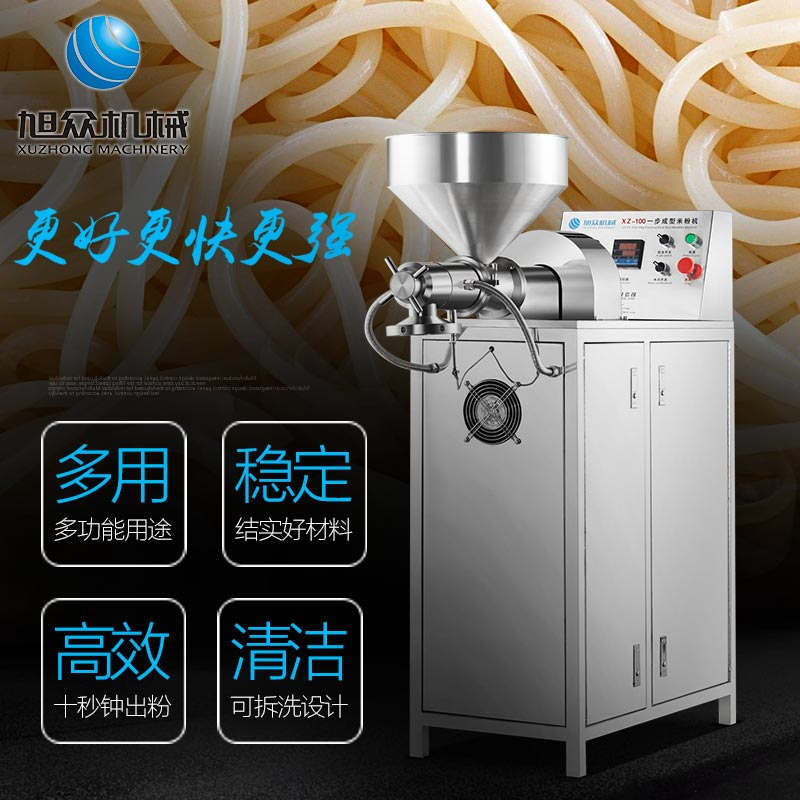 XZ-100C一步成型米粉機(jī),一機(jī)多用:米粉機(jī)廣泛適用于所有含淀粉類糧食作物。大米、玉米、蕎麥、紅薯、土豆、綠豆、豌豆等都可以生產(chǎn),它不僅能生產(chǎn)米粉、米粉、朝鮮冷面、牛筋面、年糕、玉米面條、各種雜糧粉絲、各種面條、雜糧面條、彩色面條等多種面食品