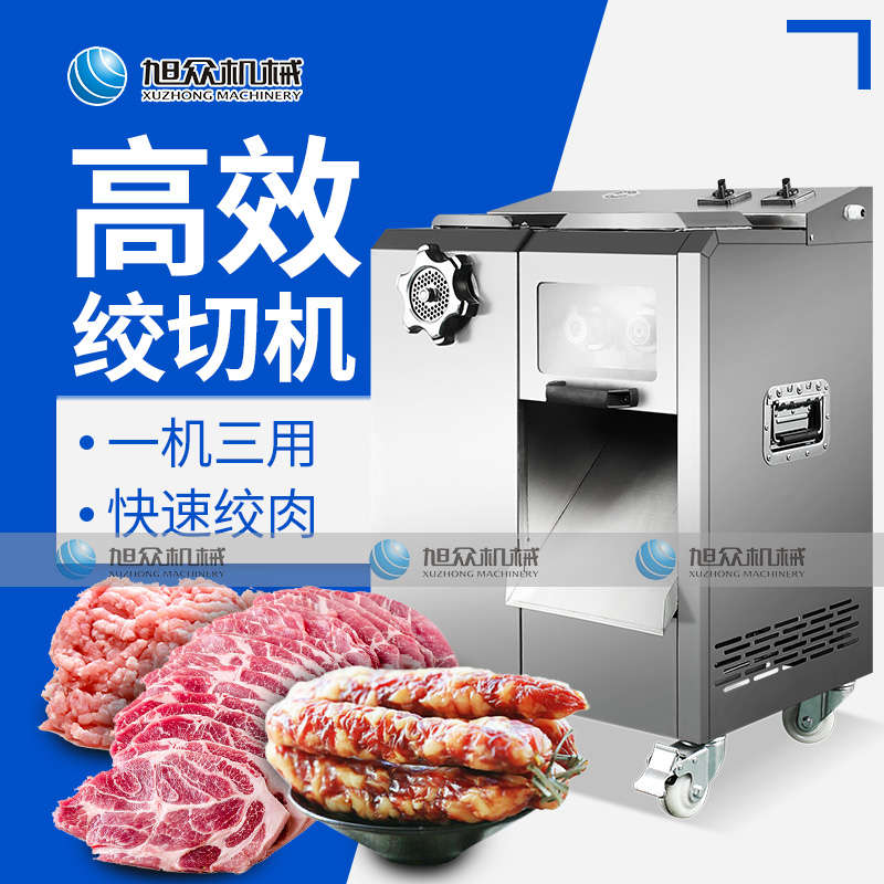 XZ-7絞切機(jī),多功能一體機(jī),切肉絞肉/灌腸/切菜。加厚不銹鋼優(yōu)質(zhì)機(jī)身堅(jiān)固耐用,不易生銹,安全衛(wèi)生易清洗。