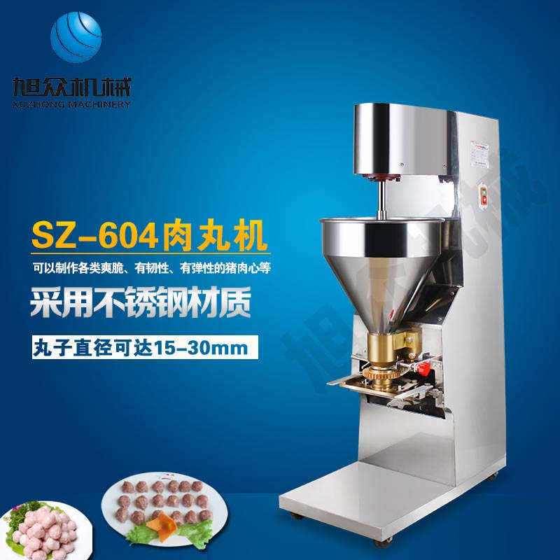 SZ-604肉丸成型機,肉丸成型機采用不銹鋼材質(zhì),丸子直徑可達15-35mm,可以制作各類爽脆,有韌性、有彈性的豬肉丸、魚丸、牛肉丸、貢丸、雞肉丸等