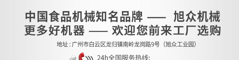 廣州旭眾食品機(jī)械有限公司是一家集科研開發(fā),生產(chǎn)設(shè)計,營銷服務(wù)為一體的現(xiàn)代化生產(chǎn)企業(yè)?,F(xiàn)代化生產(chǎn)車間,精湛制造技術(shù),所產(chǎn)機(jī)械歷經(jīng)市場重重考驗(yàn),不斷贏得海內(nèi)外客戶的贊譽(yù)。