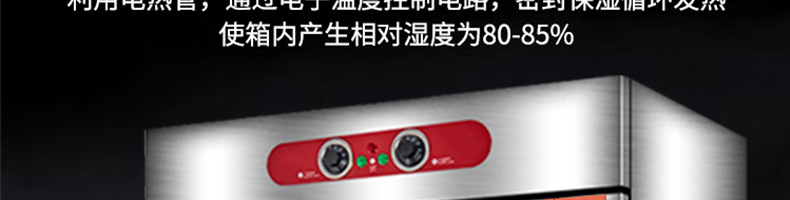 VF系列醒發(fā)箱,熱風(fēng)循環(huán)、恒溫發(fā)酵。熱氣均勻分布,多盤發(fā)酵制作美味一樣到底。恒溫醒發(fā)箱完美解決利用電熱管,通過電子溫度控制電路,密封保濕循環(huán)發(fā)熱使箱內(nèi)產(chǎn)生相對濕度為80-85%
