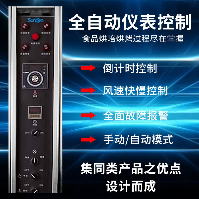 XZ-32-32層旋轉(zhuǎn)烤爐,360°熱風(fēng)環(huán)流系統(tǒng)立體熱風(fēng)循環(huán),加熱更高效,食品成色更誘人。全自動(dòng)儀表控制,食品烘培烘烤過程盡在掌握。倒計(jì)時(shí)控制、風(fēng)速快慢控制、全面障報(bào)警。