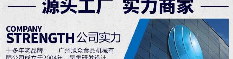 廣州旭眾食品機械有限公司是一家集科研開發(fā),生產(chǎn)設(shè)計,營銷服務(wù)為一體的現(xiàn)代化生產(chǎn)企業(yè)。現(xiàn)代化生產(chǎn)車間,精湛制造技術(shù),所產(chǎn)機械歷經(jīng)市場重重考驗,不斷贏得海內(nèi)外客戶的贊譽。