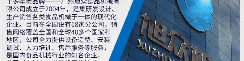 廣州旭眾食品機(jī)械有限公司是一家集科研開發(fā),生產(chǎn)設(shè)計(jì),營(yíng)銷服務(wù)為一體的現(xiàn)代化生產(chǎn)企業(yè)。現(xiàn)代化生產(chǎn)車間,精湛制造技術(shù),所產(chǎn)機(jī)械歷經(jīng)市場(chǎng)重重考驗(yàn),不斷贏得海內(nèi)外客戶的贊譽(yù)。